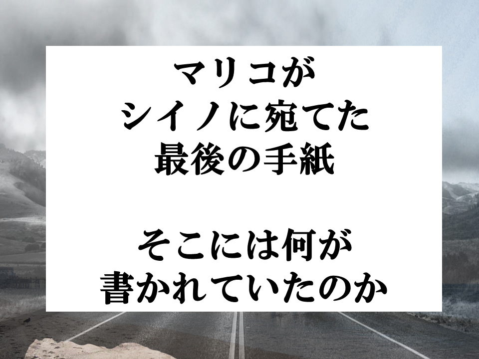 マリコはこれまで幾度となく、シイノに手紙を書いてきました。その手紙もこれまでと同様になんてことのない内容だったのかもしれません。もしくは最後の思いをしたためたものだったのかも……。ぜひ、あなたなりの答えを見つけてください。