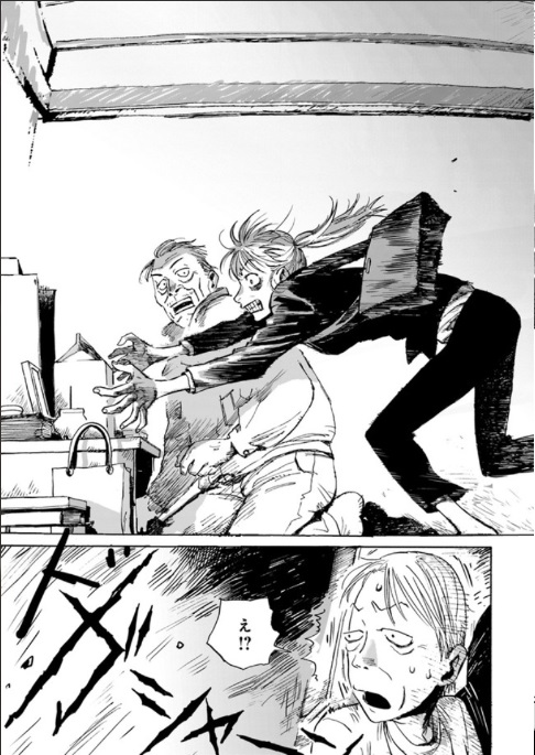 まず挙げられるのは、物語全体を通して感じられるスピード感や疾走感が素晴らしいこと。親友の死に直面し、何かから逃げるようにひた走るシイノの生の象徴ともいえる躍動感。それはまるで、マリコの死とシイノの生を対比させるかのようです。作品の世界観を表現する独特の作画もスピード感と相まって、登場人物がそこから飛び出してきそうな不思議な感覚に包まれます。