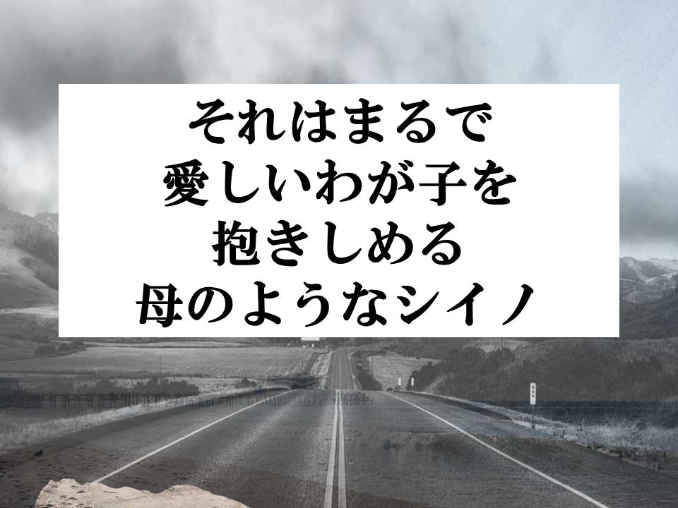まるで愛しい我が子を抱きしめる母のようなシイノと、現実には叶うことのなかった母のぬくもりに包まれるようなマリコの安心した表情に心を打たれるシーンです。