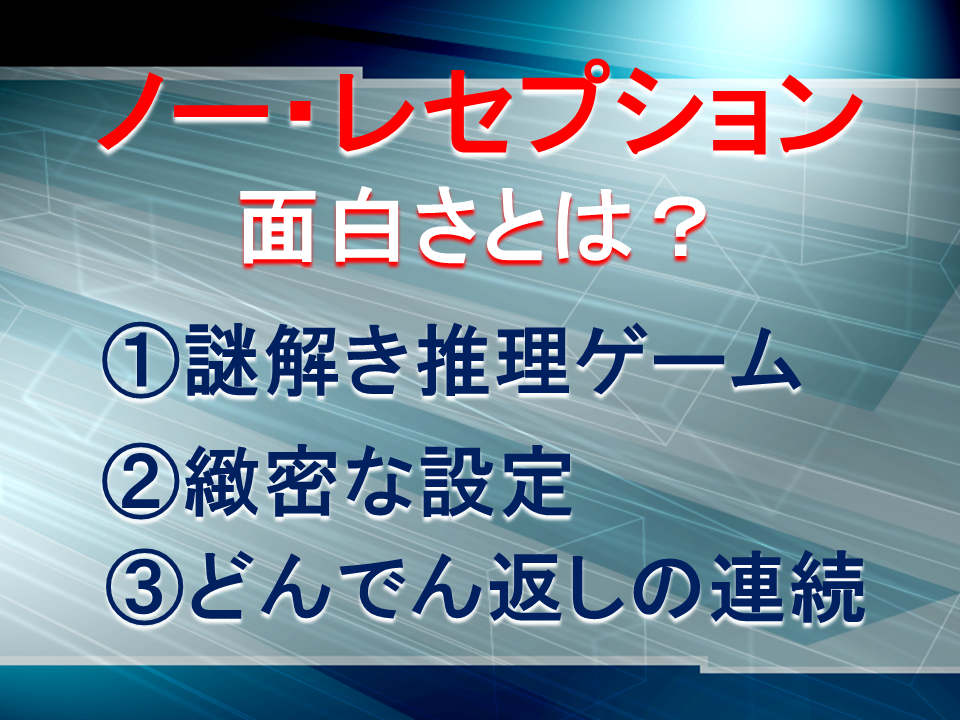 本作では、次から次へとどんでん返しが用意されています。その都度、問題を切り抜け先に進んでいく面白さがあります。一筋縄ではいかない物語はさらなる謎を生み、目が離せない、先が気になるといった魅力が満載です。