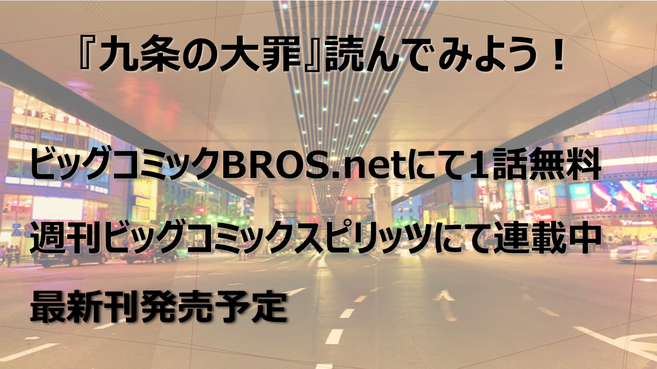 連載が開始され半年が過ぎたばかりですが、早くも話題の作品となった『九条の大罪』をままずは無料でいかがでしょうか。「ビッグコミックBROS.net」では第1話が無料配信され、「週刊ビックコミックスピリッツ」では最新号を読むことができます。読みたい方はこちらから。