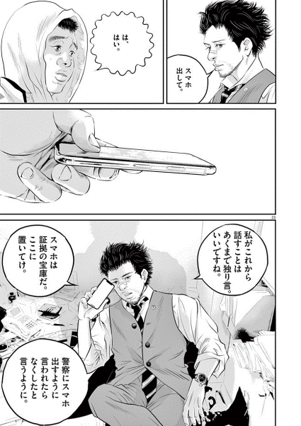 1巻のもう1つのエピソードは「弱者の一分」。薬物の配達をやらされている曽我部聡太が大麻とコカイン所持で警察に捕まります。九条が担当し明るみになる曽我部がこれまで受けてきた後輩・金本からの酷い仕打ち。負の悪循環を断ち切るため、九条が曽我部を救います。
