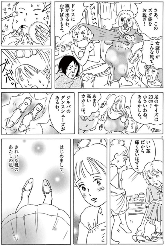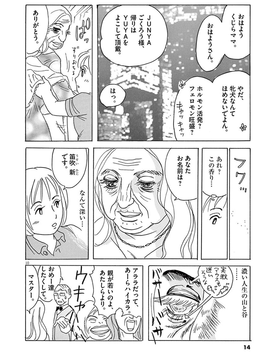 夜の世界に飛び込み、ホステスの仕事を始めた新。華やかなドレスやアクセサリーを身にまとって、苦手だったダンスも軽やかに踊るように。さらに、このような外見の変化だけではなく、性格も明るくポジティブになります。バーの大先輩方のほうがずっと年上なのにハツラツとしている姿に感化されたヒロイン。女性としてますます磨きがかかる様子は、読む側にとっても気持ちがいいものです。