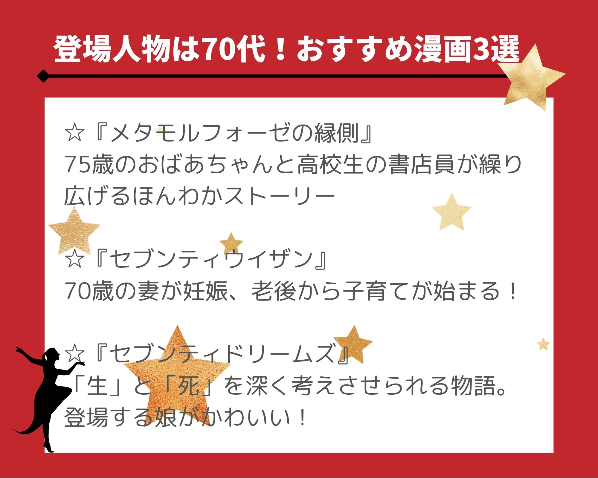 『その女、ジルバ』の登場人物たちは平均年齢70歳!最後に、同じく主人公や登場人物が70代の漫画を紹介します。