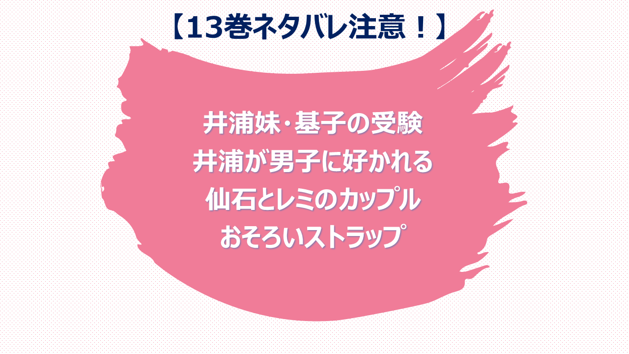 ある日、仙石親子が堀家へ。そこで、仙石がレミのことを隠していることが発覚。彼女など勉強の邪魔という仙石父にどうしても言いづらい会長でした。それでも、仙石とレミは仲良しカップル。彼らが付き合うことになったエピソードも初めて語られます。美少女キャラ・綾崎レミのハートを射止めた仙石会長。必読です。