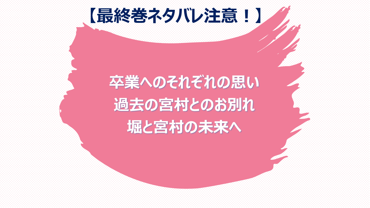 キラキラの青春を過ごしてきた二人。そんな堀や宮村たちの未来がきっと幸せであるよう、長年の友人であるかのように願って止みません。