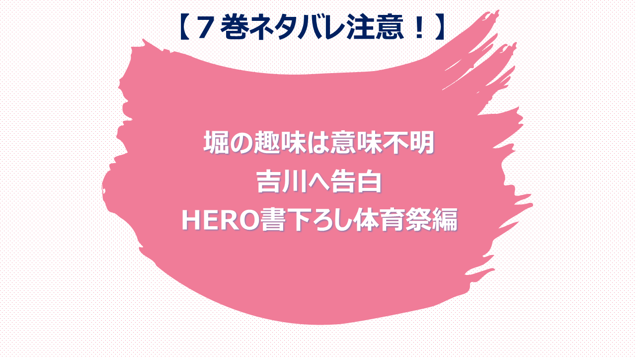 季節はすっかり秋になりました。いよいよ体育祭の季節です。チーム分けをします。堀と宮村は敵チームに。堀は吉川や仙石、井浦と同じチーム、宮村は石川や河野と同じチームです。学校行事にはこれまでやる気のなかった宮村でしたが、今回は意外とやる気になっていました。こうして、体育祭に向けて、それぞれの準備が始まっていきます。