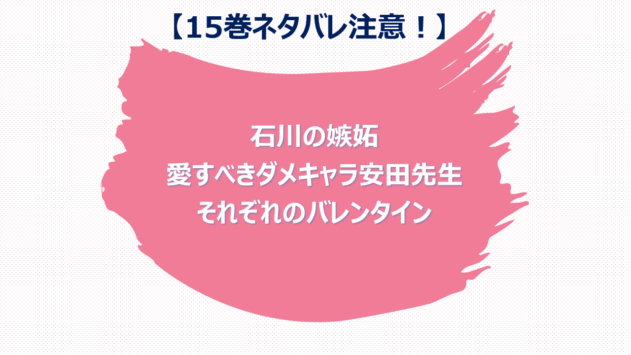 吉川が物理の中峰先生と急接近。それを見かけた石川はやきもちを焼いています。吉川が持っていた裁縫道具で、中峰の白衣のポケットを縫っていただけだったのです。吉川の裁縫道具は、石川のボタンをつけるためのものでした。
