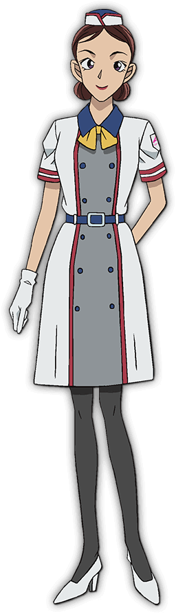 今作のゲストキャラクター。声優は女優の浜辺美波が務めます。真空超電導リニアライナーの客室担当を務める女性。リニアの体験試乗者に向けての説明会では日本WSG(ワールド・スポーツ・ゲームス)広報のスタッフ・白鳩舞子と開発エンジニアの井上治とともに当日の流れを説明してくれます。終始明るくリニアスタッフのアイドルと自称する彼女、ちょっぴり口が軽めなのは玉に瑕。