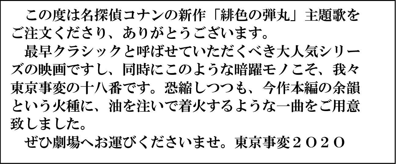 毎年様々なビッグアーティストが主題歌を手掛けてきた劇場版名探偵コナン。今年はなんと8年ぶりに活動を再開した東京事変が担当しています。コナンと東京事変という今までになかったタッグ。コナンにも新しい風が流れているのを感じます。