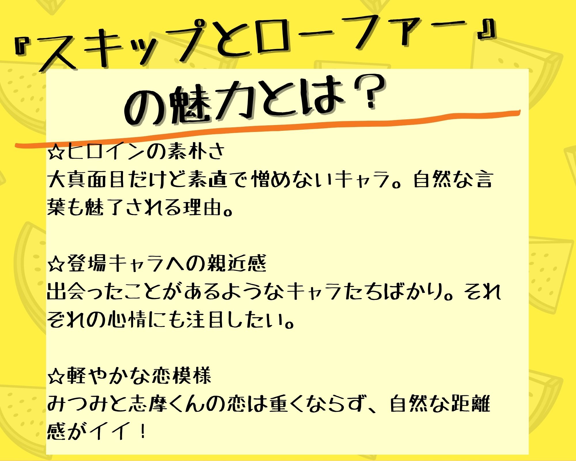 みつみと志摩くんは異性としてだけではなく、人間的にも惹かれ合う存在。お互いの長所短所を理解し、少しずつ距離を近づけていくところも自然な恋模様に繋がっているのです。