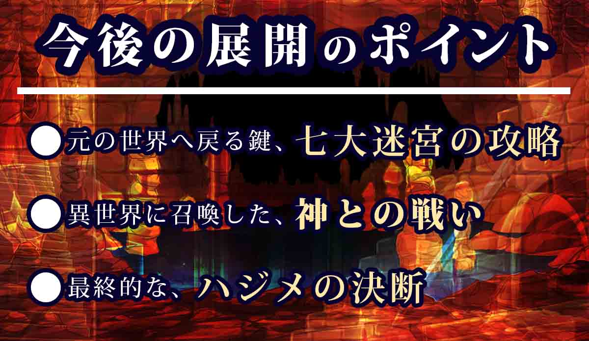 ハジメが元の世界に戻るためには七大迷宮を攻略し、解放者たちが残した謎と神代魔法の取得が必須。魔人族も七大迷宮の攻略に乗り出しているため、今後迷宮の攻略は熾烈を極めることが予測されます。