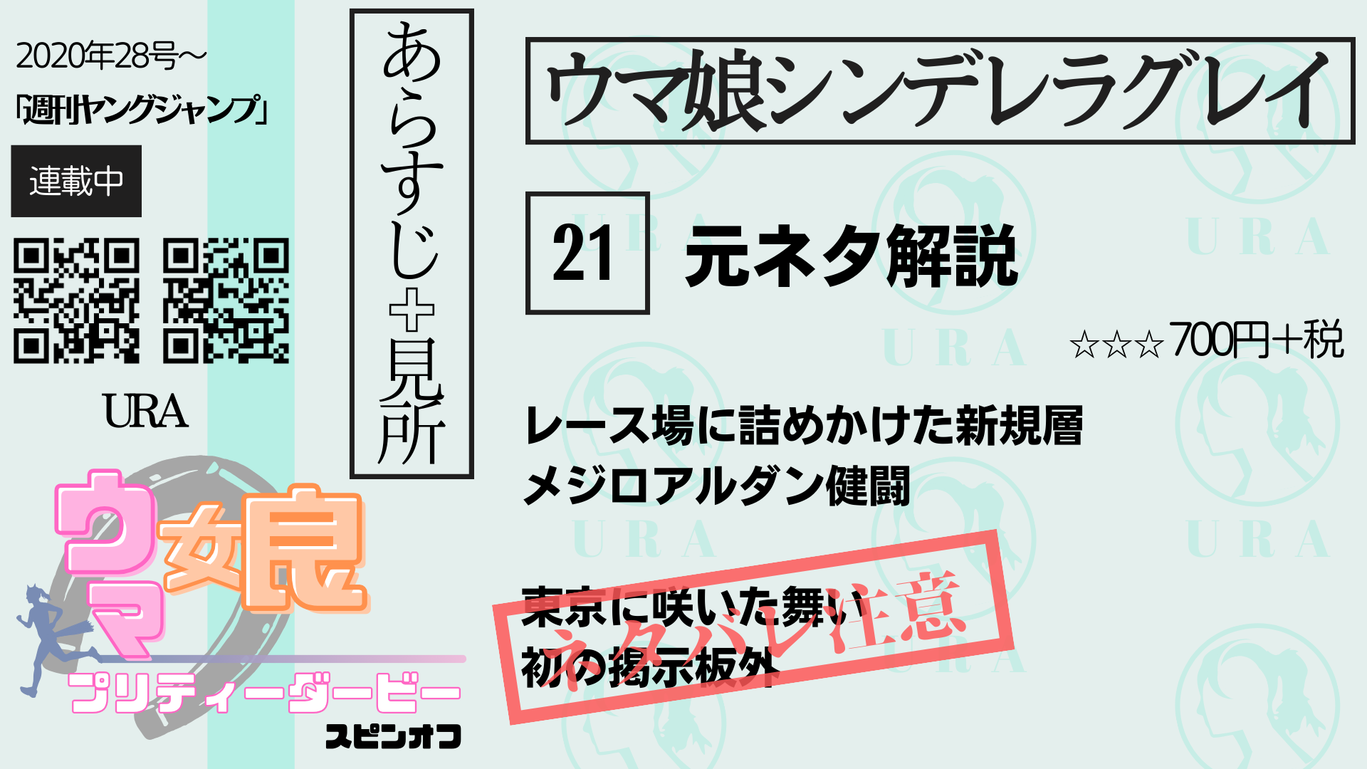 『ウマ娘シンデレラグレイ』(以下、「シンデレラグレイ」)は2020年6月から集英社の青年漫画雑誌「週刊ヤングジャンプ」で連載されているスポーツ漫画です。アプリゲーム『ウマ娘プリティーダービー』(以下、「ウマ娘」)の公式スピンオフで、ゲームにも登場するオグリキャップを主人公に据えた作品。