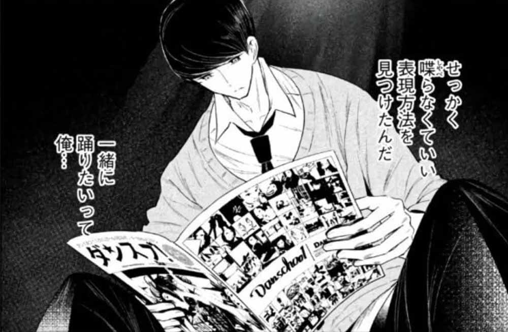 合同授業を通して湾田と会話を交わすようになり、なぜ踊りたいのかというカボの問いに好きだからと答える湾田。さらにダンスは喋らなくていいという良さもあると聞き、カボはダンス自体に興味を抱き始めます。