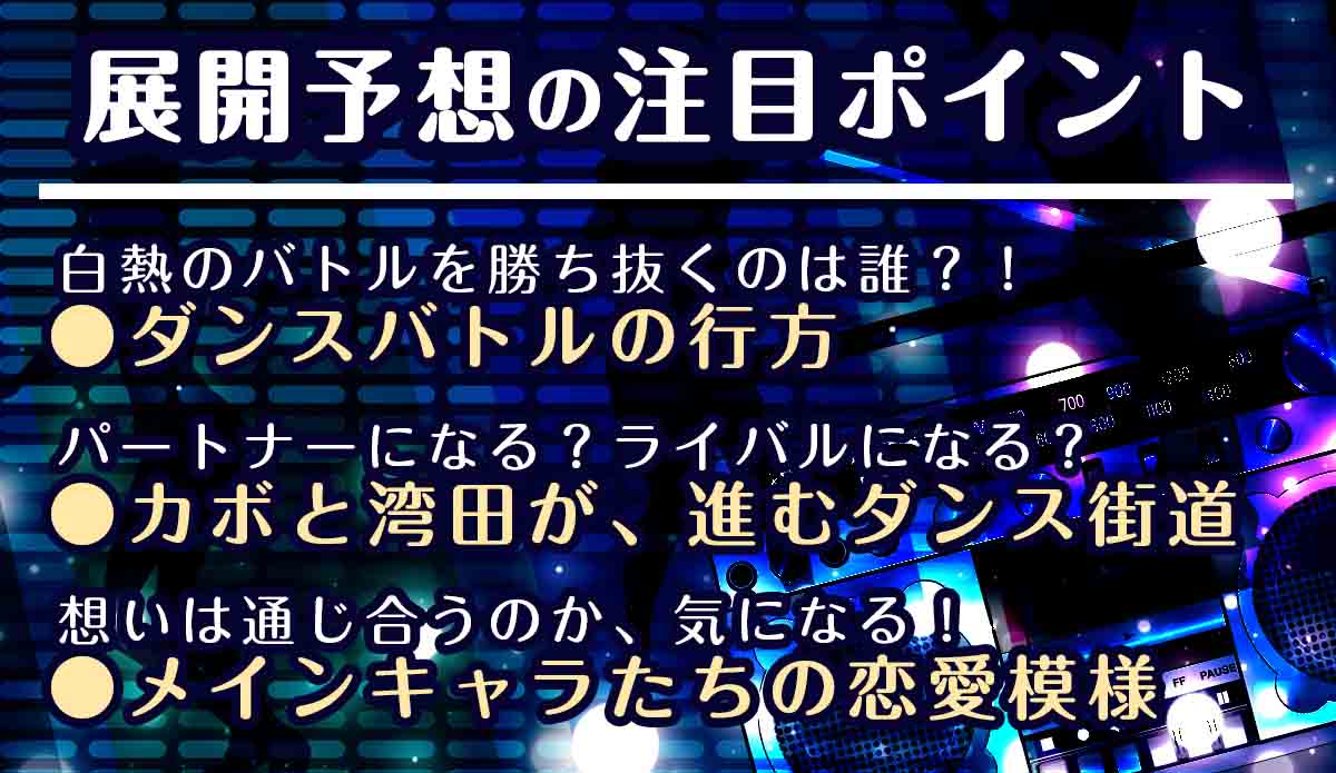 得意分野は違えどもチームコンテストやダンスバトルの経験を経て、これから2人が進むべき道を見つける展開が予想されます。2人でパートナーとして一緒に踊っていくのか、それとも良きライバルとして同じ道で戦うことを選ぶのでしょうか。