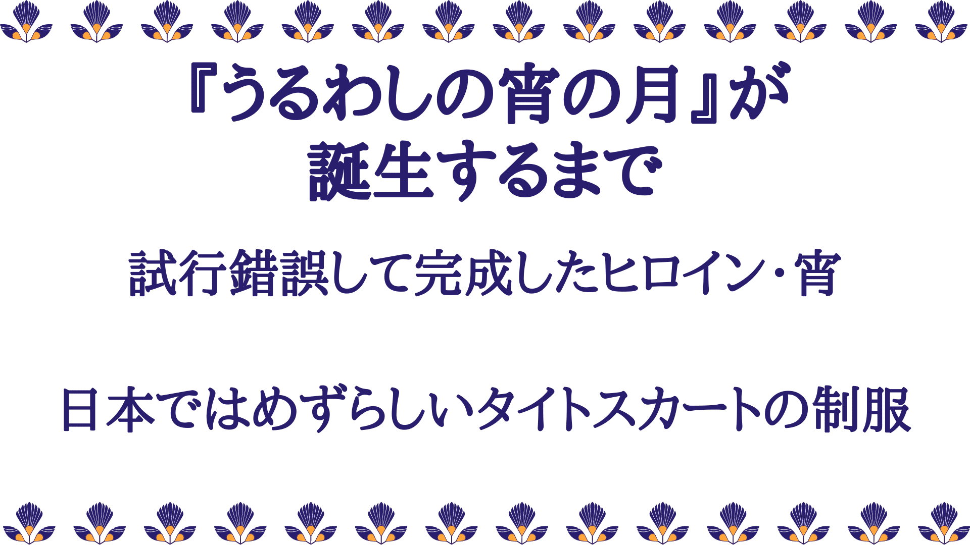 その後、キャラクターが決まってからタイトルが決定します。『うるわしの宵の月』というタイトルには、主人公の女の子を見つめている男の子視点というイメージが盛り込まれているそうです。