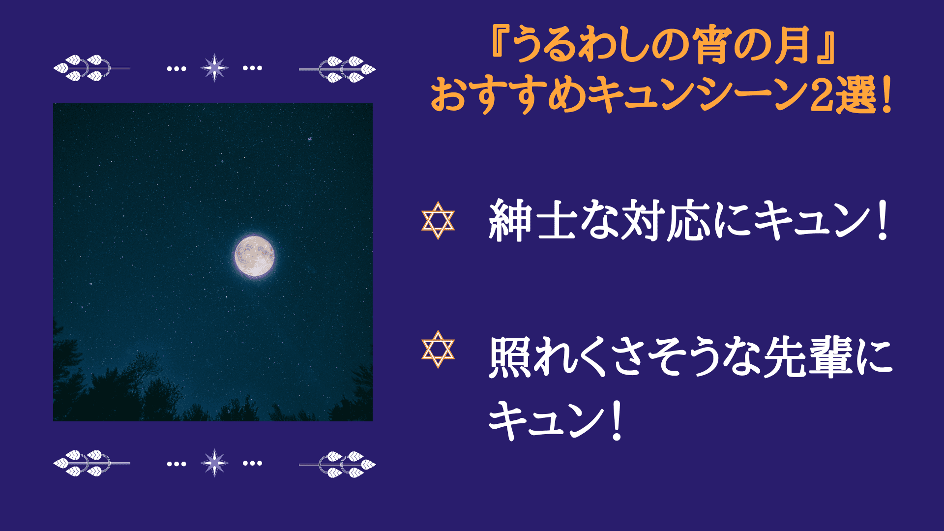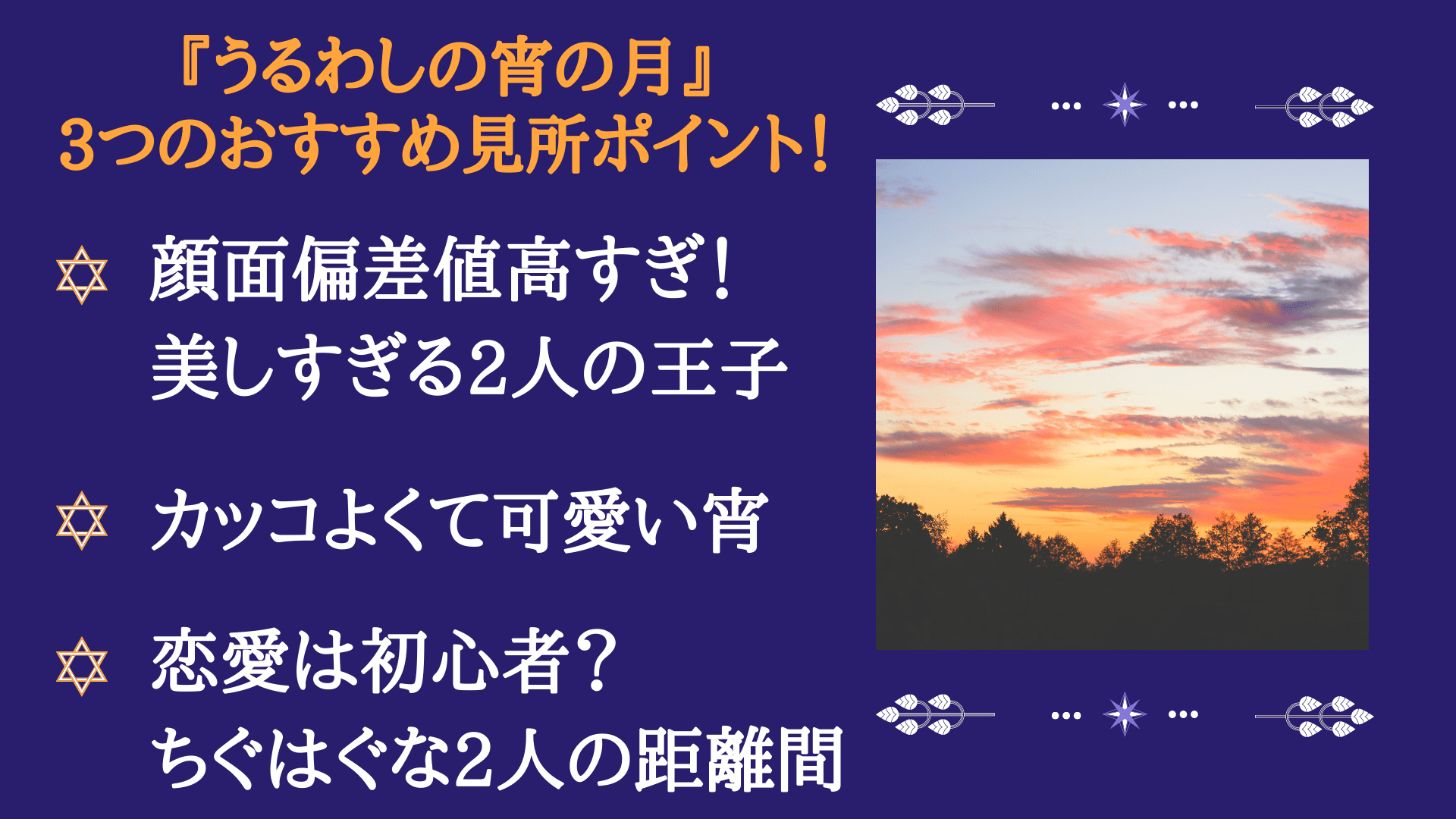 ここではまず『うるわしの宵の月』を読むうえで、おすすめしたい3つの見所を紹介します。