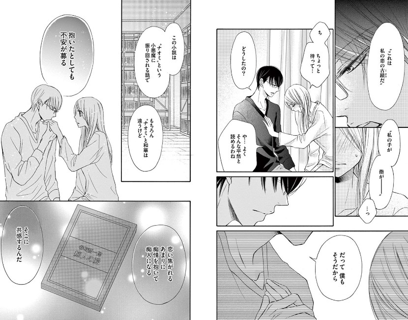 和華の朗読の練習に付き合うと言い出す忍。なかなか読めない和華に、忍は2人の思い出の本『痴人の愛』を読んで聞かせます。忍にとってこの物語は、強く共感できるもの。そんな忍の朗読に、快感を覚える和華なのでした。