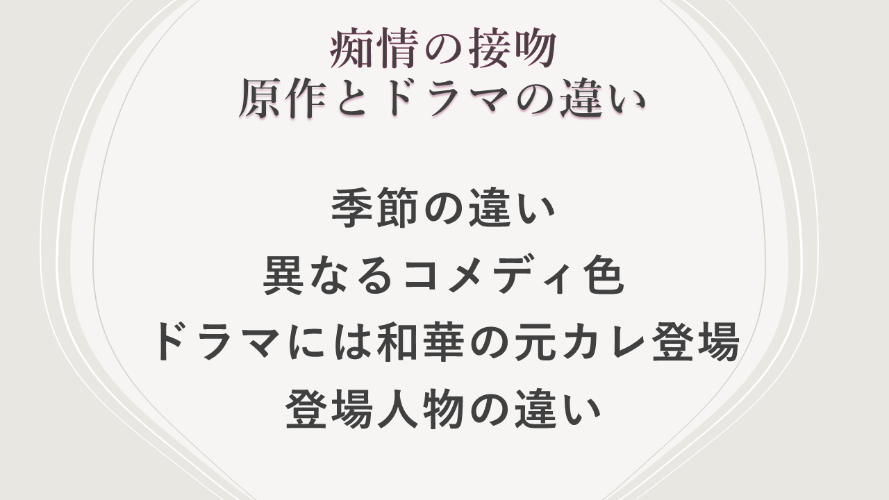 漫画『痴情の接吻』とテレビドラマ『痴情の接吻』の違いを解説してきました。放送中ということもあり、今後の放送では、まだまだ出てくるかもしれません。