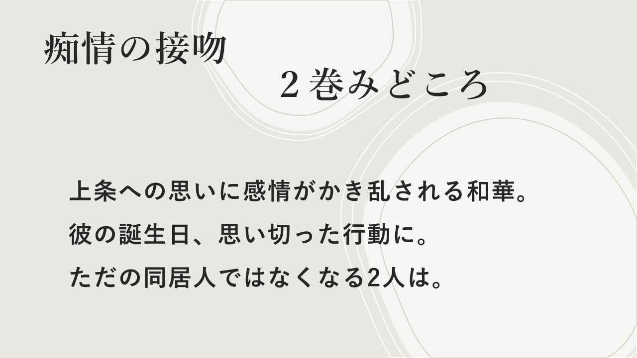 『痴情の接吻』は、「プチコミック」でもアンケート1位を獲得してきました。それだけ、満足度の高い作品だということでしょう。それもそのはず、和華のように愛されることは女性の憧れだからです。ぜひ原作漫画で、ひたすらに愛され続ける和華と愛し貫く忍の情熱的な愛の物語を堪能してください。