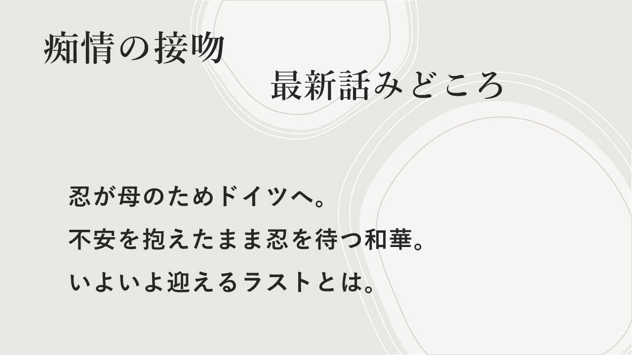 ドイツにいる忍の母の具合が悪くなり、急遽ドイツへ戻る忍。一方その滞在が延び、不安になる和華。