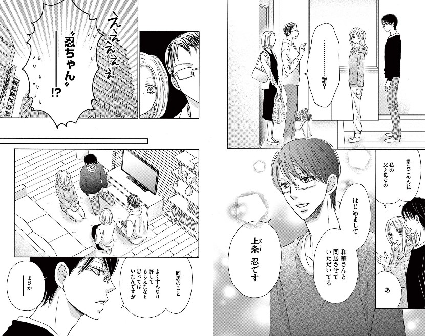 和華の両親の突然の一時帰国。和華にも知らせず、両親揃ってマンションにやってきます。同居人の「忍ちゃん」に挨拶しようとしたところ、忍が顔を出し大騒ぎに。和華の同居人はてっきり女の子だと思い込んでいたのです。忍が男で、しかも付き合っている相手だと知り、和華の両親の反応は。