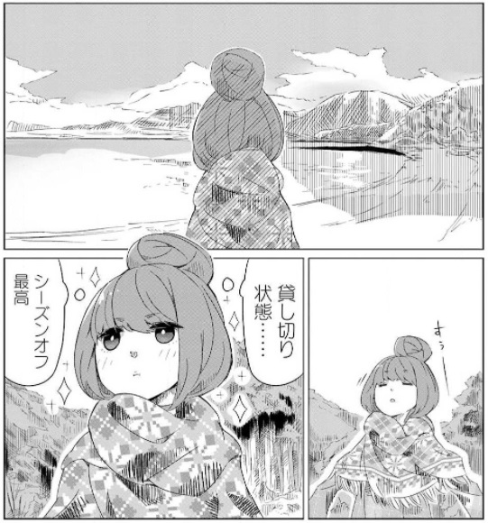 自分で実際に体験するのがベストですが、なかなかそうはいきません。でも作品を読んでゆるい出来事を追体験すれば、読者はわずらわしい日常から一時でも解放されます。『ゆるキャン△』はせわしない現実の日常から逃れて、ほっと一息つける一服の清涼剤の役目を果たしてくれるわけです。
