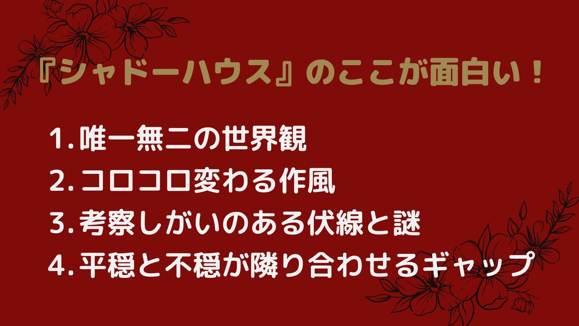 このように各方面から注目されている『シャドーハウス』ですが、一体どんなところが評価されているのでしょうか?
