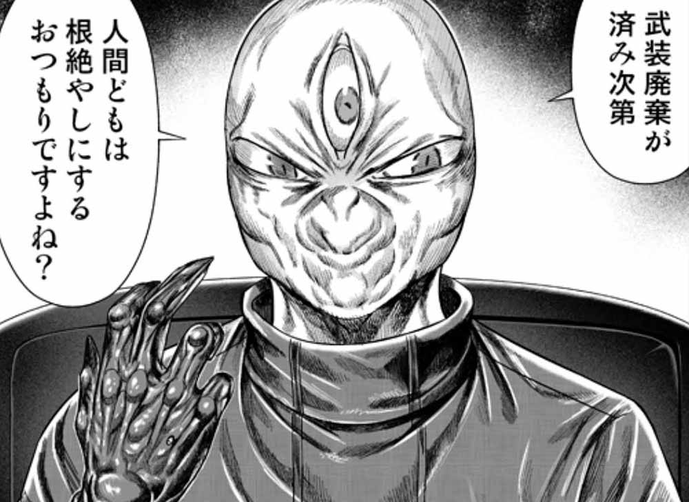 相容れない存在に対して、抱いた敵意から生まれる戦いの日々。新人類として生まれた異形の者たちが選択する未来など、グロさを感じさせるシーンは引き続きありつつも壮大なスケールのSF漫画へと変化していきます。