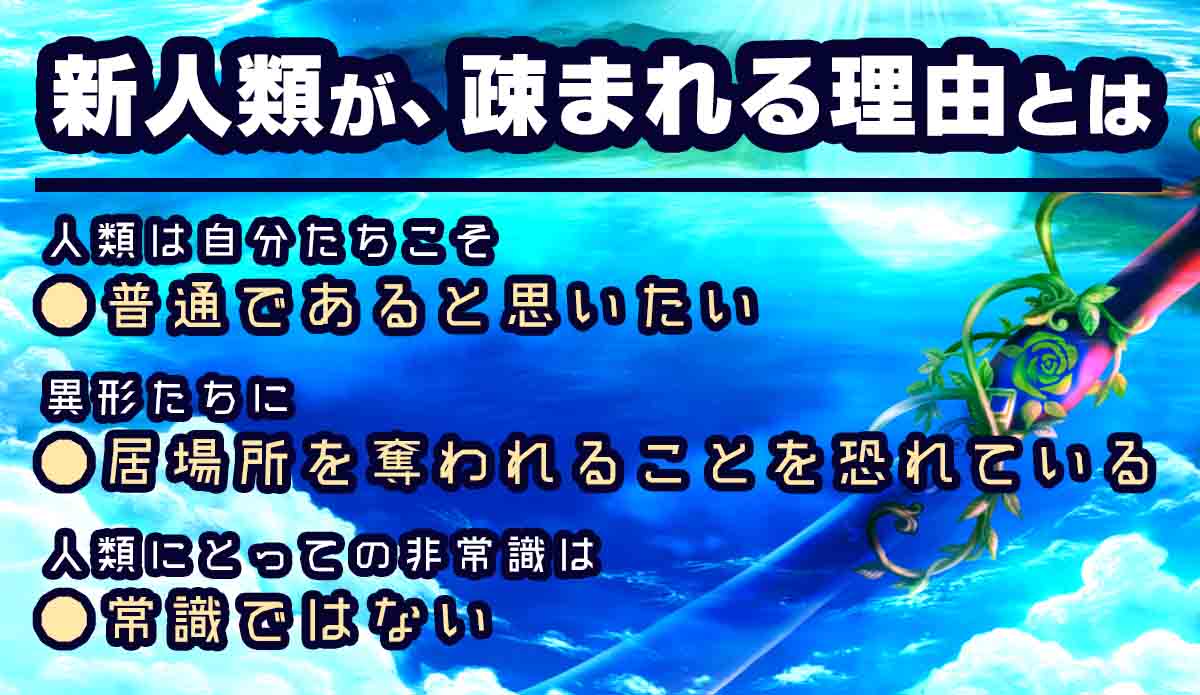 なぜ人類は、新人類である異形の存在を受け入れないのか?そこには以下のような思いが、秘められていると推察します。