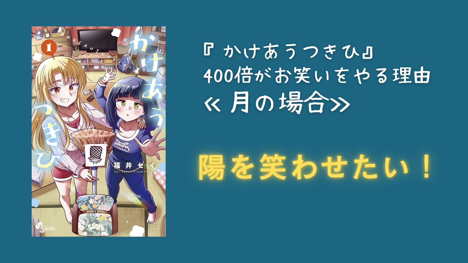 都内の狭いアパートでジリ貧ルームシェアをしながら芸人養成所に通う漫才コンビ「400倍」の生活を描いた日常漫画、『かけあうつきひ』。