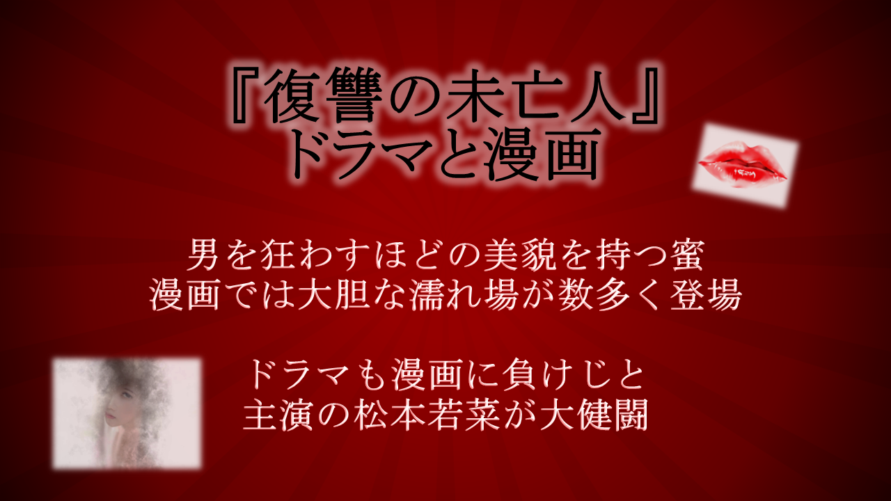 現在放送中のドラマ『復讐の未亡人』は、松本若菜演じる蜜の大胆な演技が話題となっています。原作漫画ほどの露出は期待できませんが、漫画の世界観を損なわないように健闘しています。同じ黒澤R原作の『金魚妻』でも大胆な濡れ場に挑戦した松本若菜だからこそ、本作にも果敢にチャレンジしているようです。