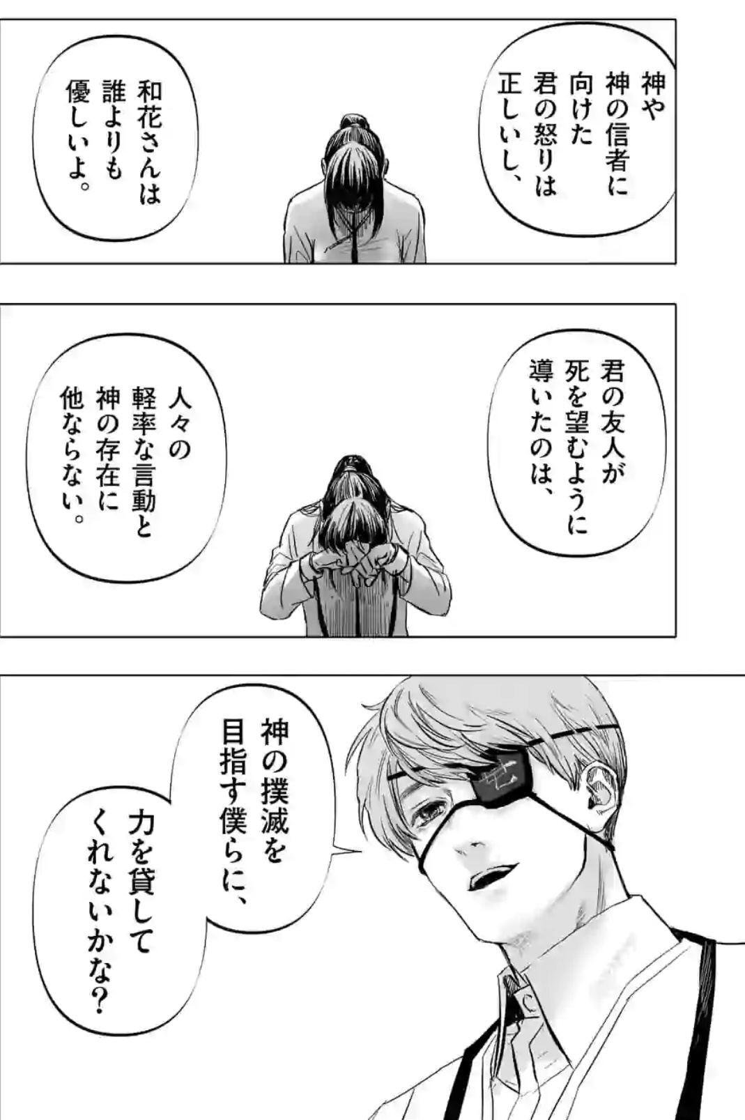 さらに時永は和花に対して、和花の心の奥底には優しさがあることを認め、神への復讐心や友人を苦しみから救えなかった気持ちも受け入れていきます。