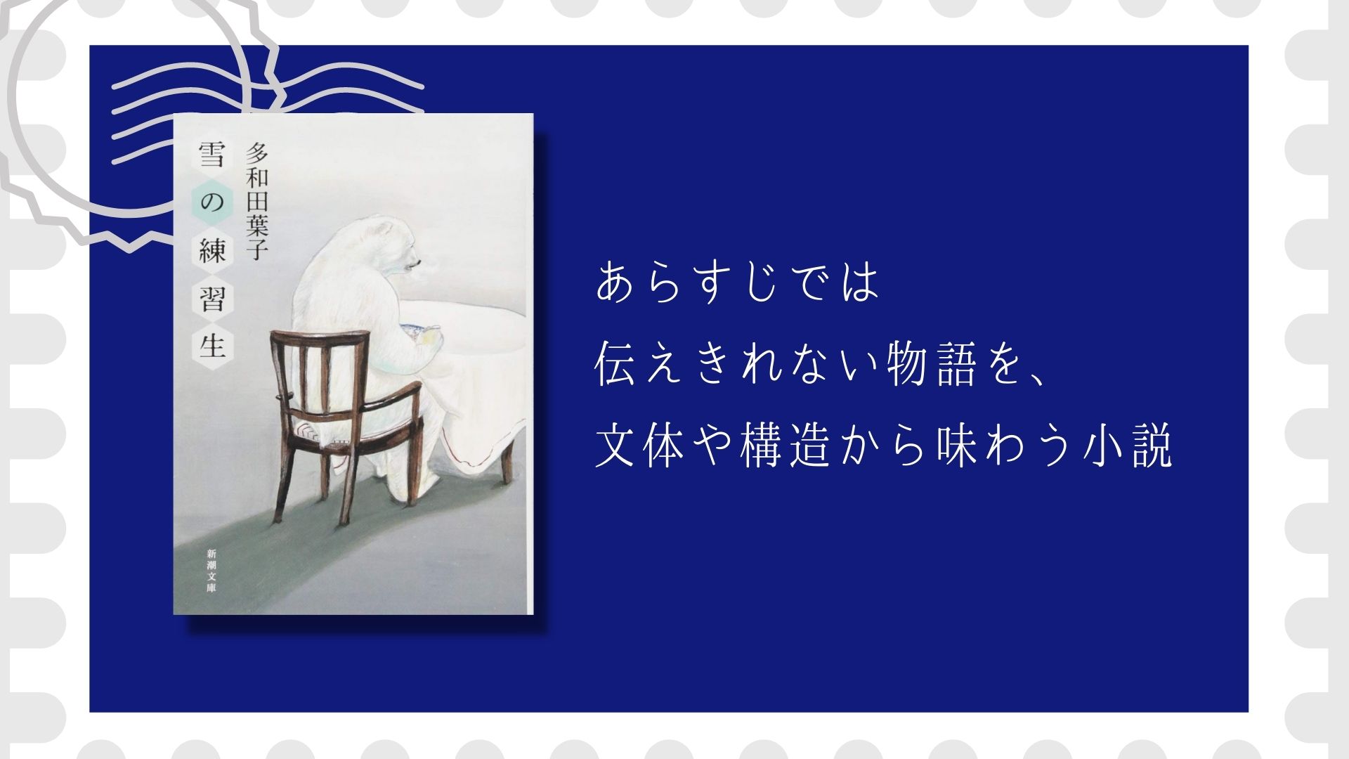 本好き芸人でnote芸人でもある、赤ノ宮翼さんによるブックセレクトコラム「今月の偏愛本 A面/B面」!B面では「今読んでほしい!」と思う本を、A面よりも自由度高めにおすすめしていただきます。 海外小説をあまり読んでいないことに気が付いた赤ノ宮翼さん。今回紹介する『雪の練習生』は、「海外小説に手を出しづらい」という方におすすめできる、海外在住の日本人作家・多和田葉子さんによる小説です。