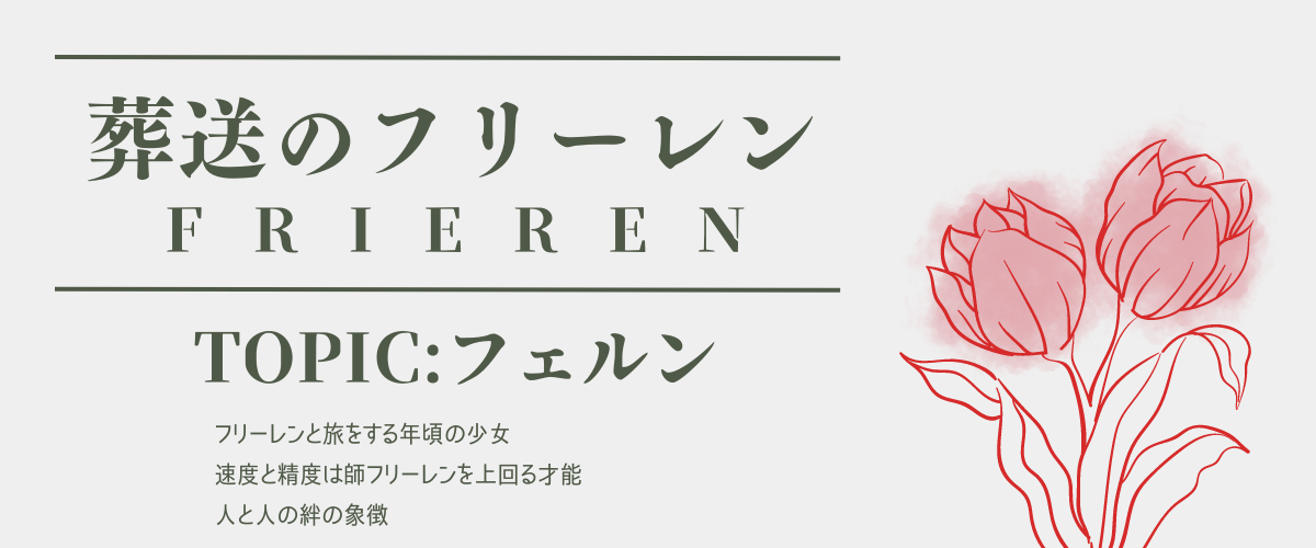 フェルンは幼少期からフリーレンに師事して、魔法の技能を修得した人間の少女です。物静かで感情を表に出さないところはフリーレンに似ていますが、年頃らしい感性とある程度の一般常識を備えています。保護者であるはずのフリーレンの面倒を見るなど、立場があべこべになることも。