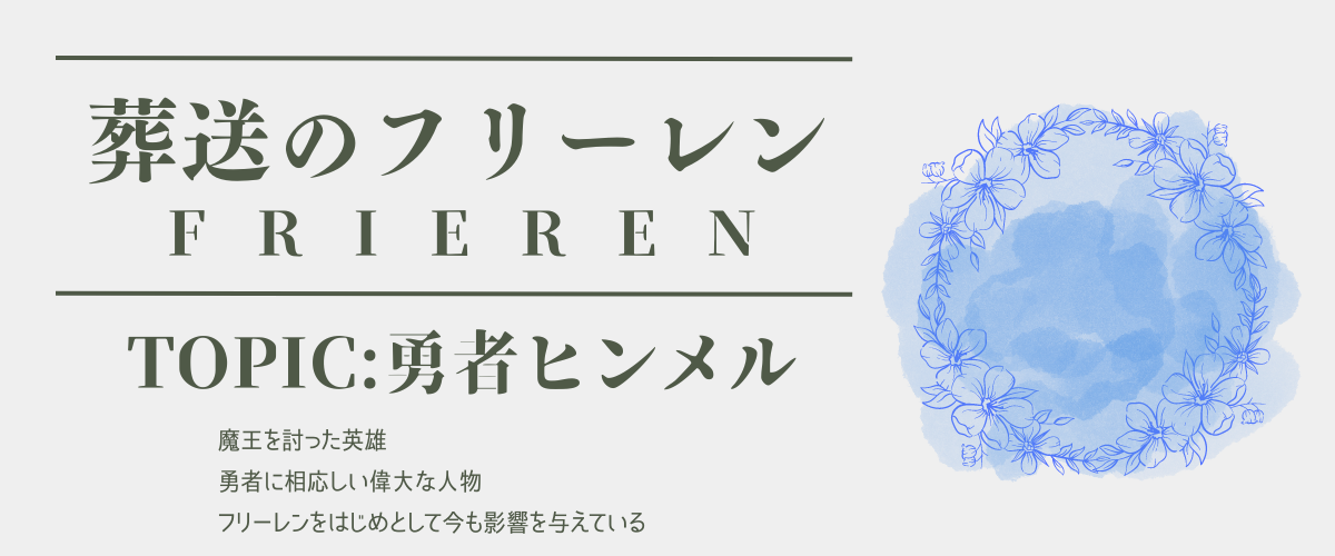 多くの人々はヒンメルが「勇者の剣」を抜いた本物の勇者と信じていますが、真実は違います。「勇者の剣」は女神が大いなる災いに備えて、剣の里の聖域に遺した伝説の武器です。本編の時間から遡ること80年前、しかるべき時と使い手だけが引き抜けるとされているそれを……ヒンメルは抜けませんでした。