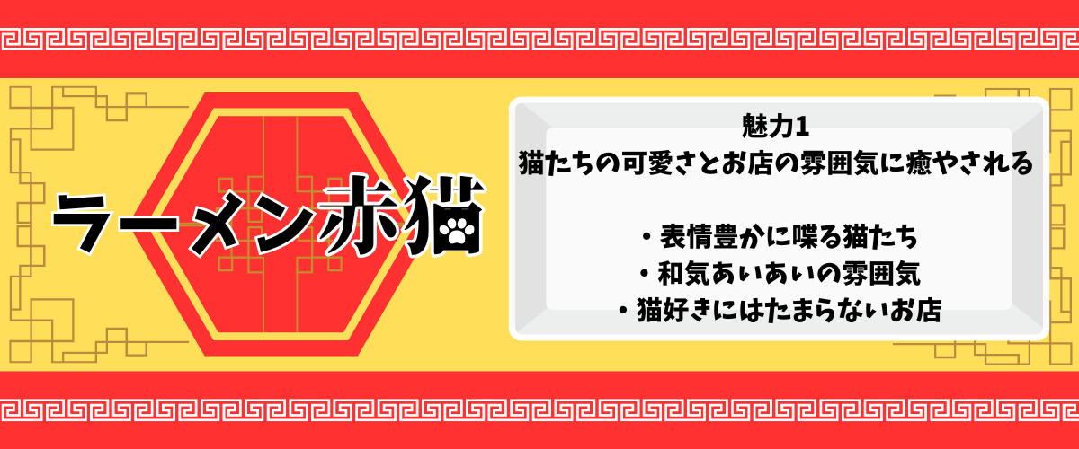 来店する客層は主に「ラーメン赤猫」贔屓の猫好きばかりなので、お店全体の雰囲気がいいのも和むポイント。