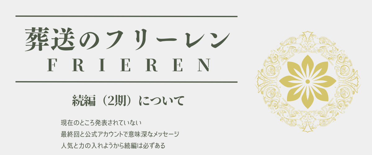 最終回およびアニメ公式アカウントであった意味深なメッセージ「The Journey to Ende continues.(エンデへの旅は続く)」が続編を匂わせているように思えるものの、確定出来る要素がないのでなんとも言えないのが現状です。