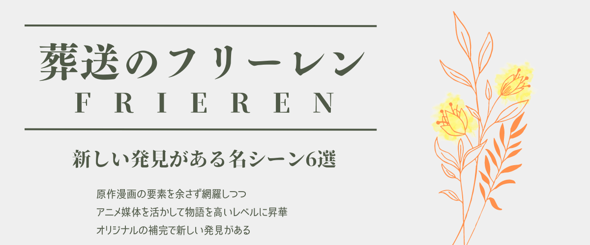 この記事ではそんなアニメ『葬送のフリーレン』の見所を紹介していきます。放送された全28話は名場面が非常に多いため、わかりやすいようにジャンル別に分けてエピソードの内容や、原作漫画との違いを解説します。