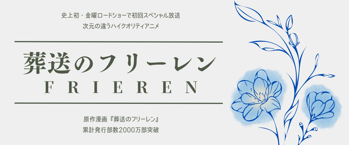 アニメ『葬送のフリーレン』は日本テレビ系列で、2023年9月から2024年4月まで金曜深夜「FRIDAY ANIME NIGHT」で放送されたテレビアニメです。初回放送が「金曜ロードショー」の2時間特番という異例の扱いや、近代日本アニメーションの総決算と言って良い規格外のクオリティで話題となり、大好評のうちに最終回を迎えました。