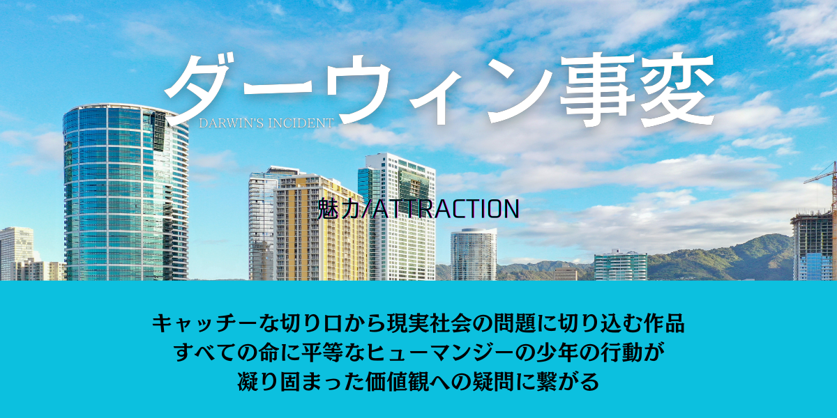 アニメ化に当たってさらなる注目を集める『ダーウィン事変』。本作がどんな話で、どういったところが魅力的なのか、ここからわかりやすくご紹介していきます。ネタバレは最小限にとどめますが、記事後半の具体的なエピソードでは多少踏み込むのでご容赦ください。