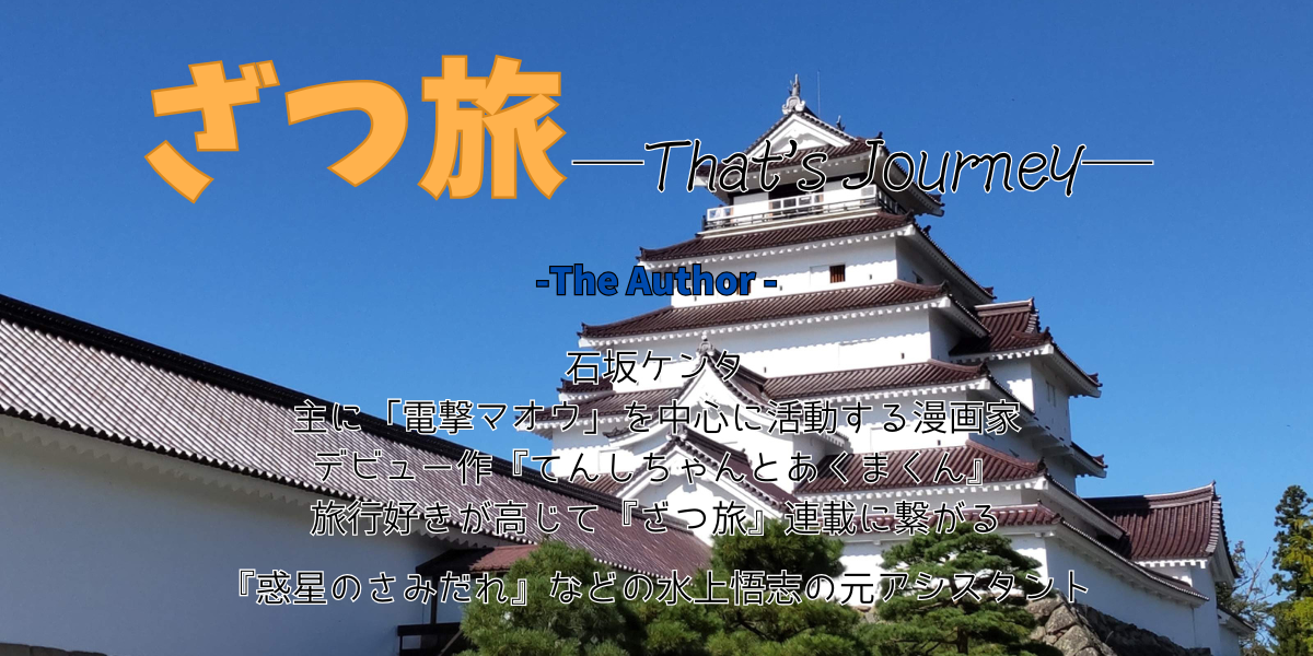 「ざつ旅」の作者は石坂ケンタです。東京都出身、1983年7月4日生まれの42歳。詳しい経歴は不明ですが、『惑星のさみだれ』や『スピリットサークル』で知られる水上悟志のアシスタントをしていたことがあります。