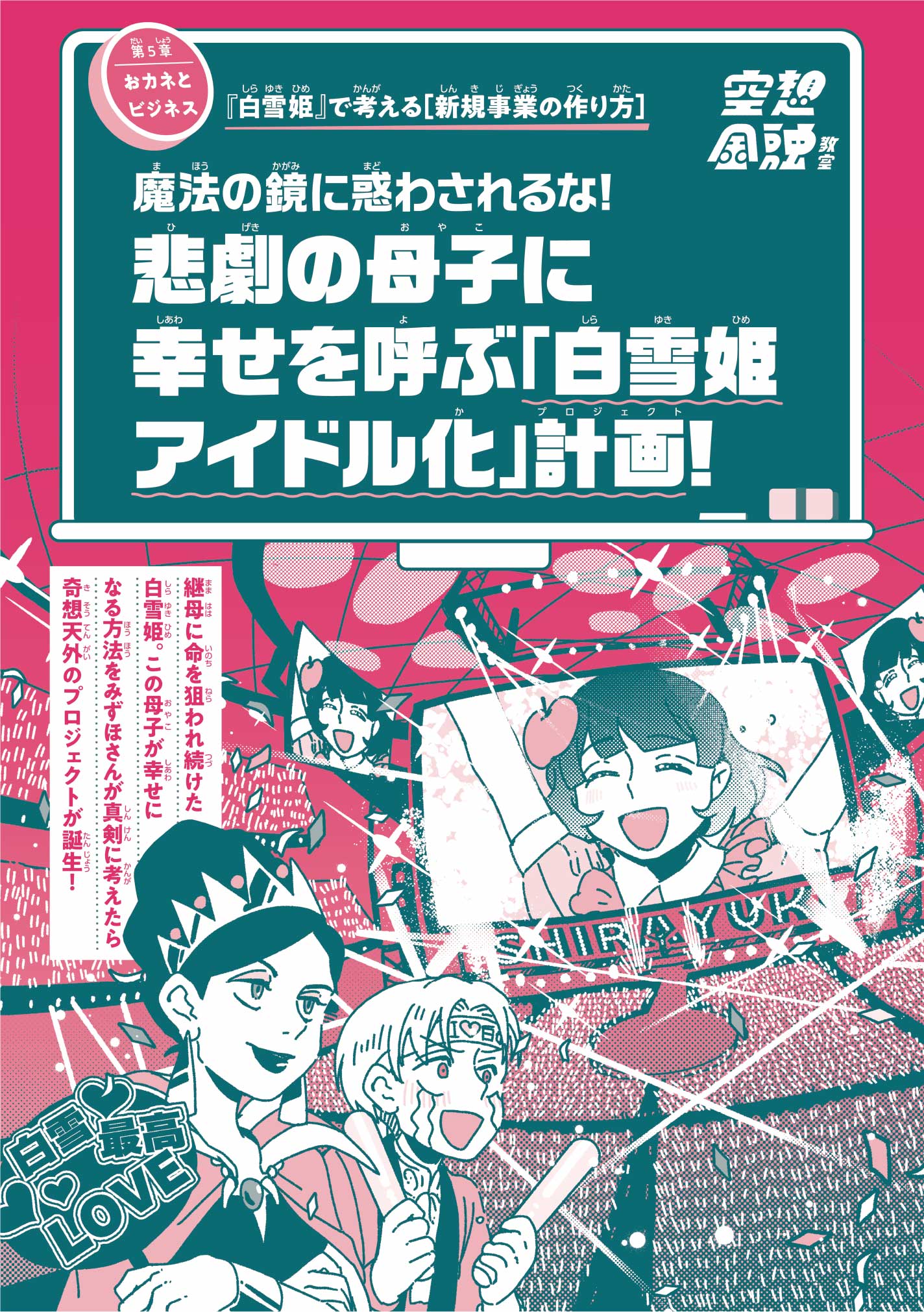 『白雪姫』の話は、本当に驚きでした。世界でいちばん美しかったお妃が、自分よりきれいになった娘を殺めようとする物語で、本当にひどい母親ですよね。ところが、みずほさんは「おカネの力で、白雪姫もお妃も幸せにできないでしょうか」と言い始めて、その方法を真剣に考えるんです。「何を言ってるんだ、この人たちは!?」と、最初は意味がわかりませんでした。