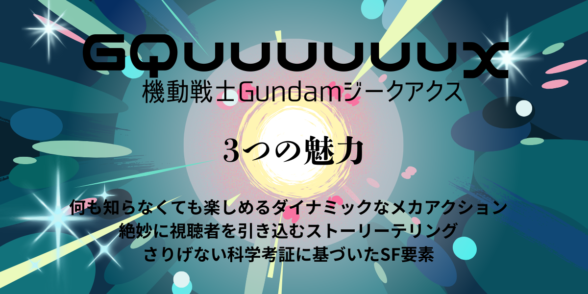 大きな熱狂を巻き起こした「GQuuuuuuX」ですが、作品としての魅力は大きく分けて3つあります。秀逸なメカアクション、巧みなストーリーテリング、そしてセンス・オブ・ワンダーに溢れたSF要素です。
