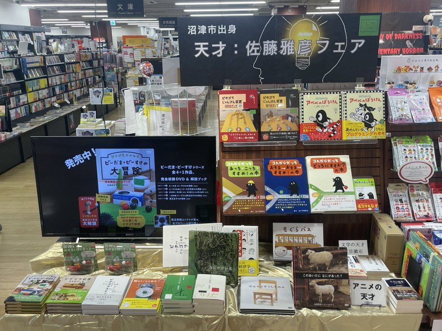 静岡県の長倉書店サントムーン店さんで、クリエイター・佐藤雅彦さんの著作を紹介する「天才:佐藤雅彦フェア」が開催されています。