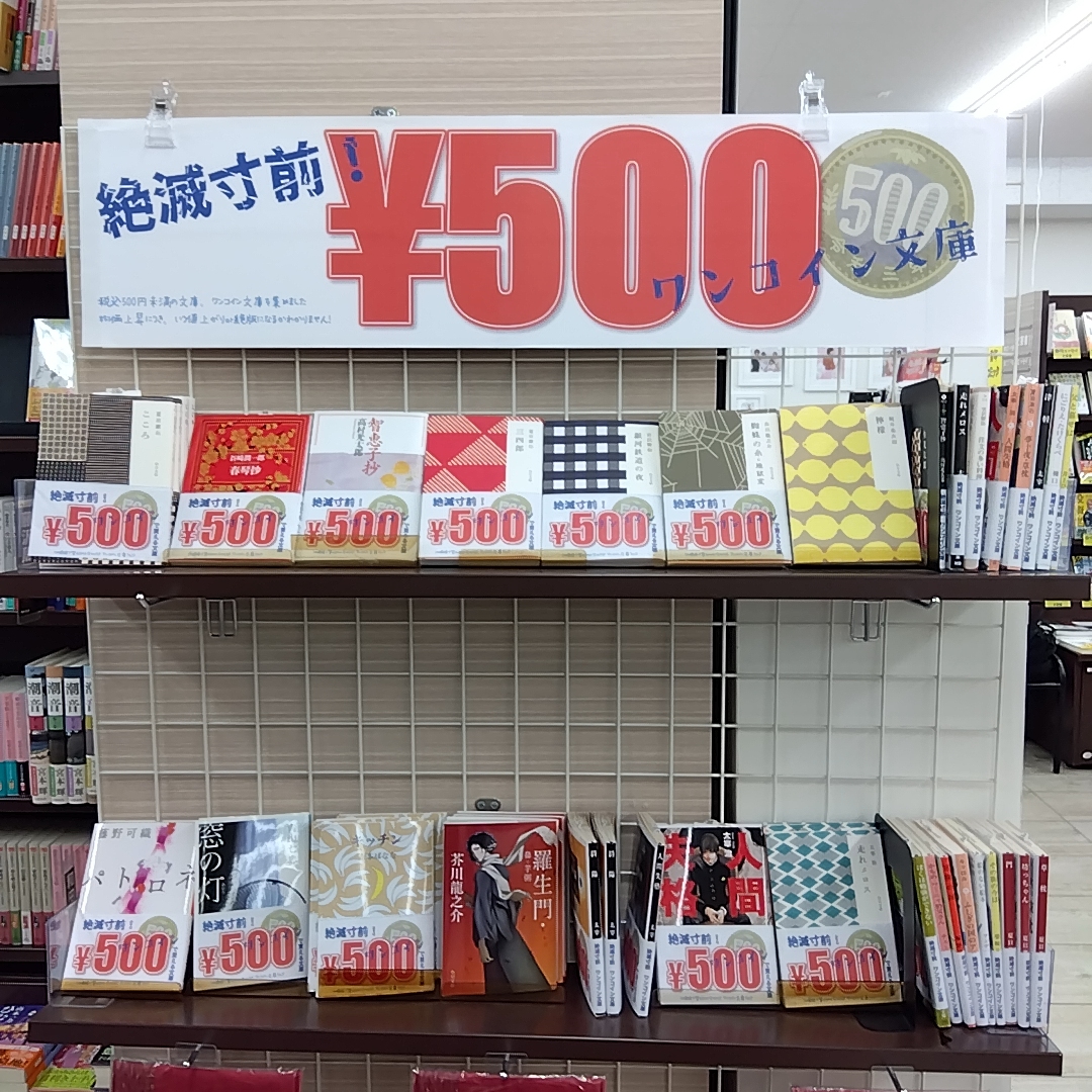 当フェアは、500円以下の本が棚を埋められないほど在庫が減ってしまうまで継続されるとのこと。物価上昇の影響により、いつ値上がりや絶版になるかわからない本ばかりです。この貴重なチャンスに、ぜひお店に足を運んでみてはいかがでしょうか。