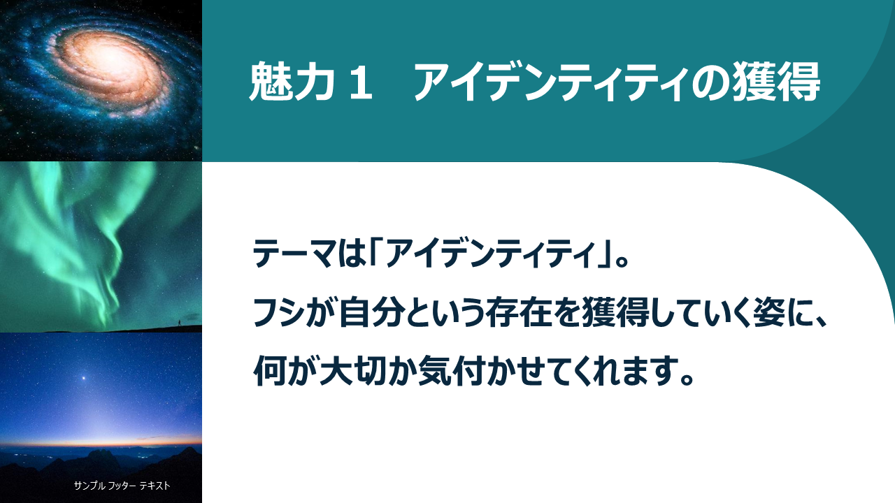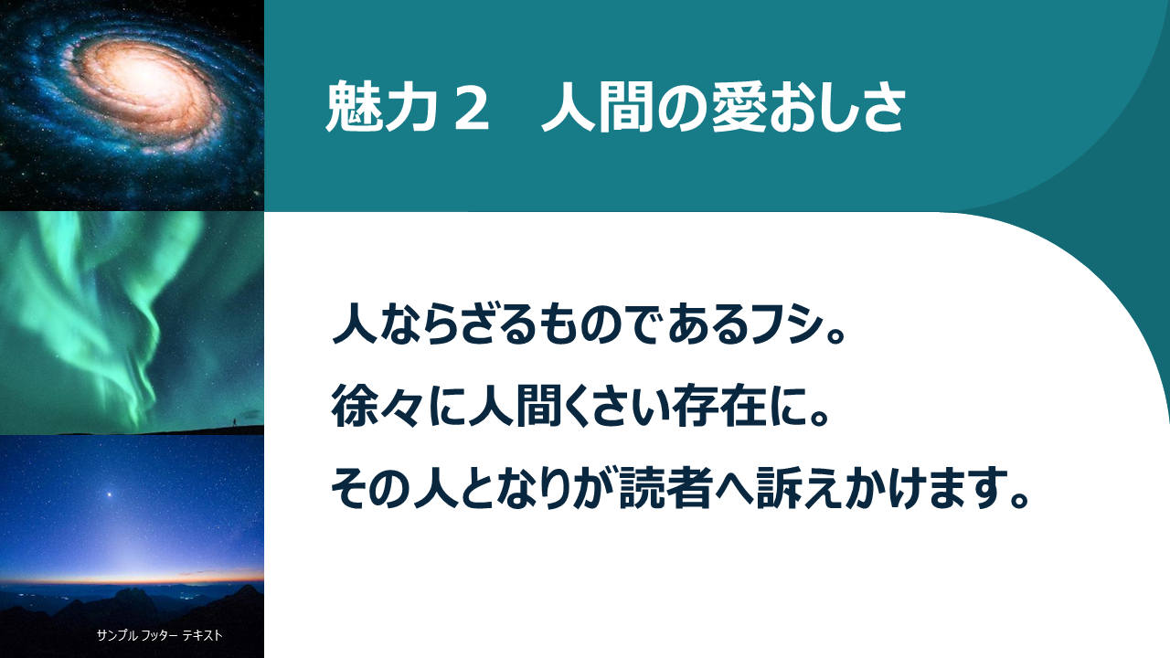 フシという主人公、そしてそれをつくった人ならざる者という語り手。彼らがキーパーソンではあるものの、本作は人間の命、生きていることへの愛おしさが感じられる作品です。