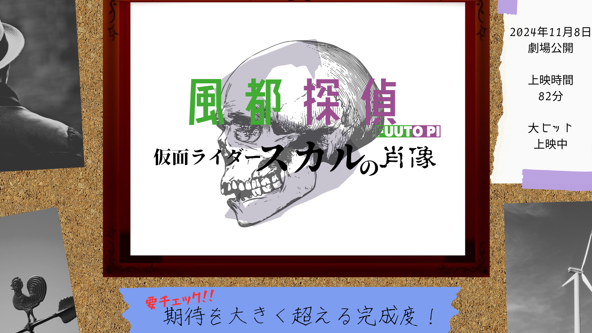 『風都探偵 仮面ライダースカルの肖像』(以下、「仮面ライダースカルの肖像」)は予定通り2024年11月8日に公開されました。期間限定上映とはいえしっかり劇場用映画として製作されており、レビューサイト「Filmarks(フィルマークス)」では11月2週目公開の映画として最高評価をマークしています。筆者も早々と観賞してきましたが、『風都探偵』はもちろん、『仮面ライダーW』ファンなら絶対に観に行くべきです。