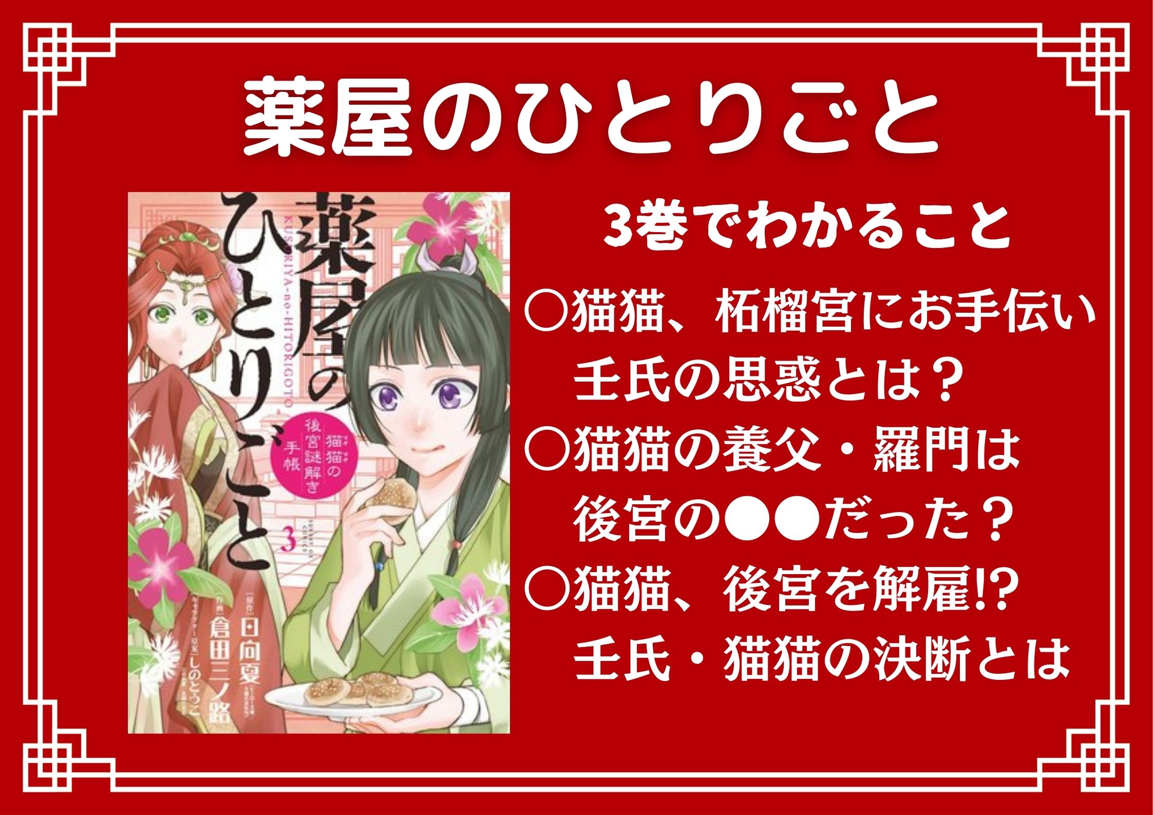さらに、猫猫に薬の依頼が届きます。しかし、その以来の陰には宮中の怪しい思惑があって……?
