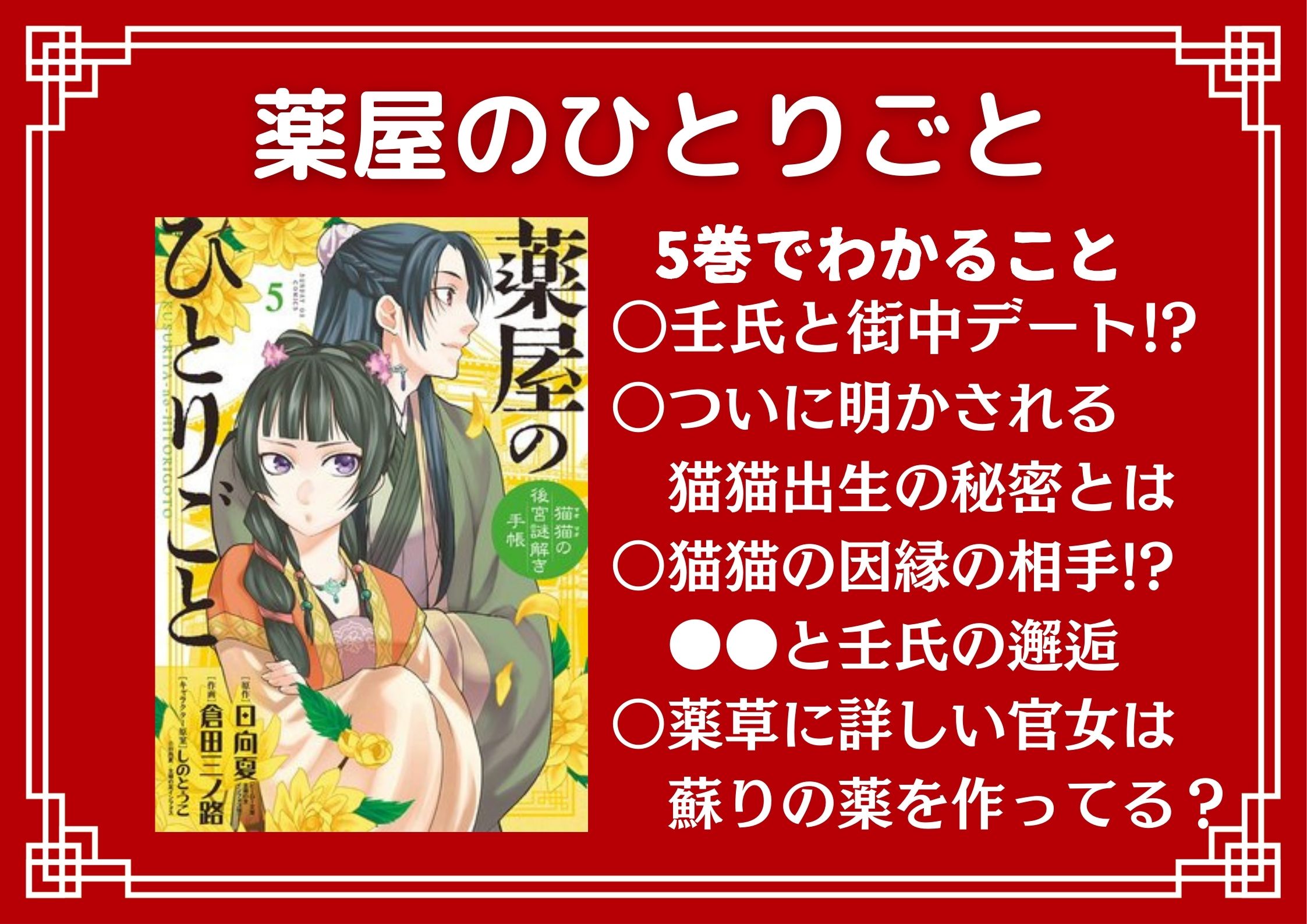 誘拐された挙句にとある大国の宮廷に売り飛ばされてしまった少女・猫猫(マオマオ)。年季があけるまで目立たずにおとなしく過ごそうと決めていた彼女でしたが、ある日、皇帝の子供たちが次々と不審な死を遂げていることを知ります。好奇心を抑えきれない猫猫は持ち前の薬の知識でその謎を解くことにしますが……?